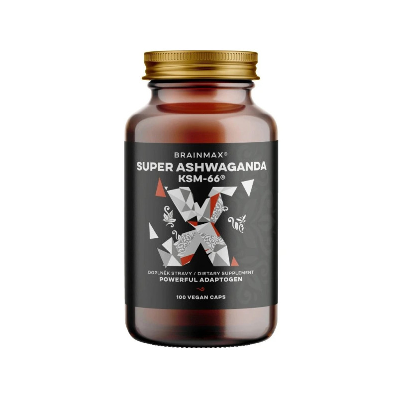 BrainMax Super BIO Ashwagandha extrakt KSM-66®, Ašvaganda extrakt, 100 rostlinných kapslí