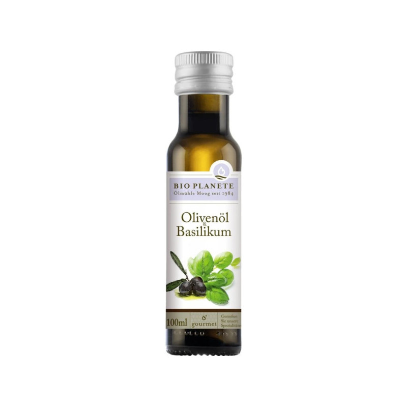 V tomto kořenícím oleji Bio Planète kombinuje vynikající bazalku s olivovým olejem a vytváří tak aromatickou a svěží kompozici. Zcela se vyhýbá přidávání dalších esenciálních látek. Tato kořeněná olejová specialita je ideální pro každodenní použití, vnese středomořský nádech do každé kuchyně. Vhodné na pečení.