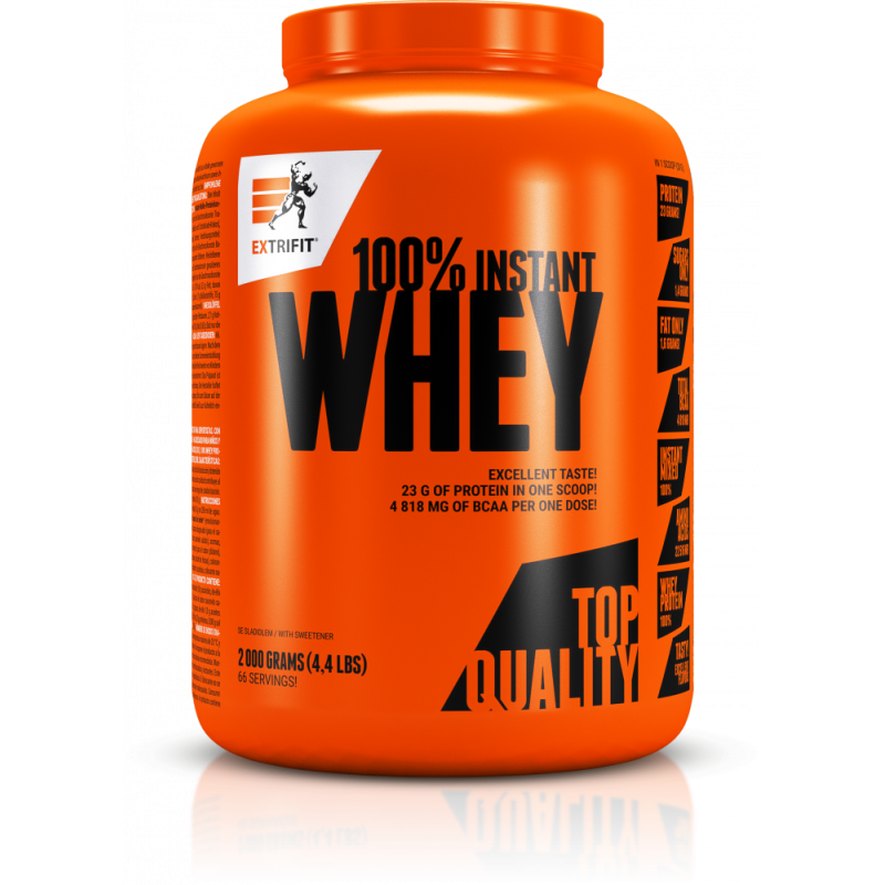 100% Whey Protein od Extrifitu je výborně stravitelný ryzí syrovátkový protein za skvělou cenu. Tento protein je plně instantní, rychle se rozpouští a jeho příprava je mimořádně snadná. Hotový nápoj má velmi příjemnou konzistenci. Díky prvotřídnímu zdroji bílkovin přispívá 100% Whey Protein k růstu svalové hmoty a k jejímu udržení v situacích, kdy je ohrožena katabolizací. V každé dávce se můžete těšit na plných 23 g bílkovin té nejvyšší kvality. Hlavní proteinová složka pochází z ověřeného evropského zdroje.