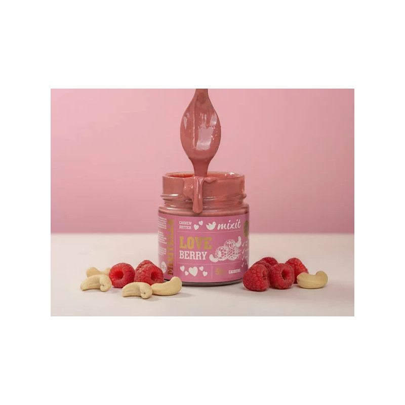 Valentýnská Mixitella od Nykki – jemný kešu krém s mandlovým krémem, pravou vanilkou a prachem z lyofilizovaných malin
