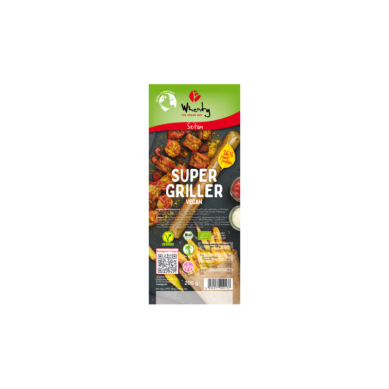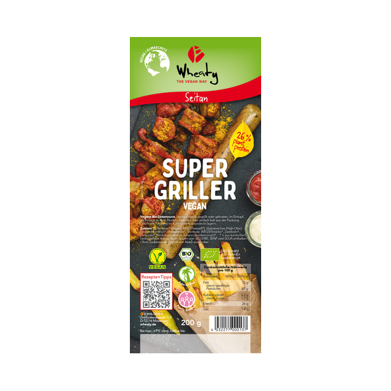 Složení: 81 % seitanu * (voda, PŠENIČNÝ protein*), slunečnicový olej se zvýšeným obsahem kyseliny olejové*, kvasnicový extrakt*, sůl, PŠENIČNÝ škrob*, cibule*, koření*, zahušťovadlo guarová guma*