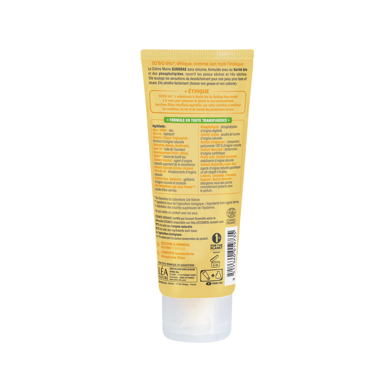 Díky obsahu přírodních látek (99 %) pokožku do hloubky vyživuje a hydratuje, navíc jemně pečuje a napomáhá obnovit její přirozenou hebkost a vláčnost. Certifikované BIO složení (Ecocert Cosmos Organic), šetrné složky bez silikonů a přírodní vůně přinášejí rukám požitek z čisté a intenzivní péče.
