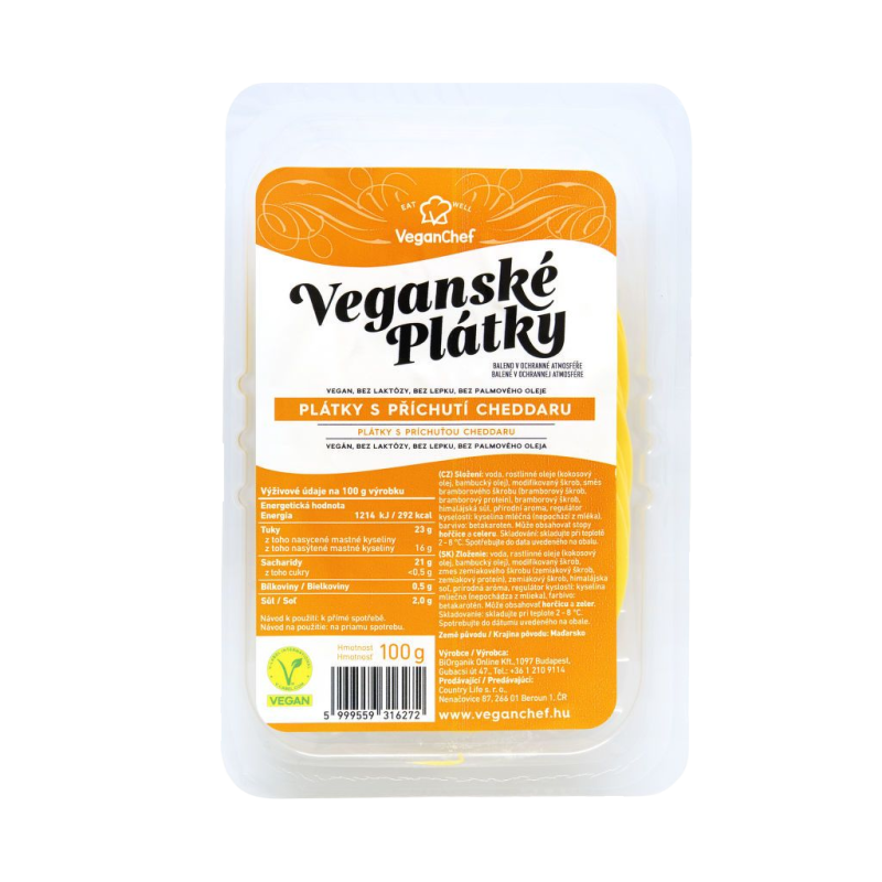 Veganská alternativa plátkového sýru s příchutí cheddaru.