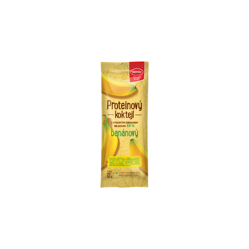 Je nicméně vhodný i ke konzumaci mimo sport, jako doplnění bílkovin. Sáček obsahuje 17 g bílkovin = kvalitního syrovátkového proteinového koncentrátu. Má nízký obsah nasycených mastných kyselin. Koktejl obsahuje 5 % sušeného banánu.