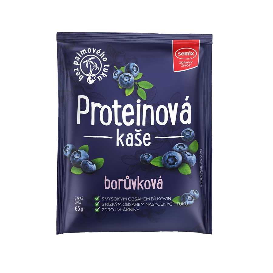 Proteinová kaše borůvková obsahuje na jednu porci 17 g bílkovin - kvalitního syrovátkového proteinového koncentrátu. Má vysoký obsah vlákniny a nízký obsah nasycených tuků. Je bez palmového tuku.