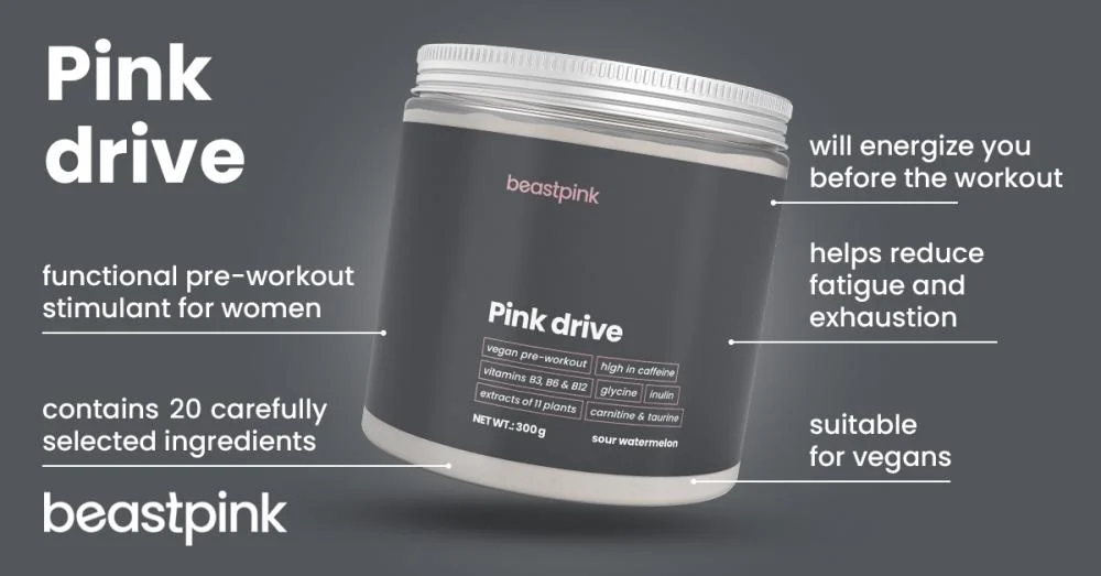 Pink Drive je účinná předtréninkovka pro ženy, která vás připraví na trénink, podpoří výkon a zefektivní spalování tuku