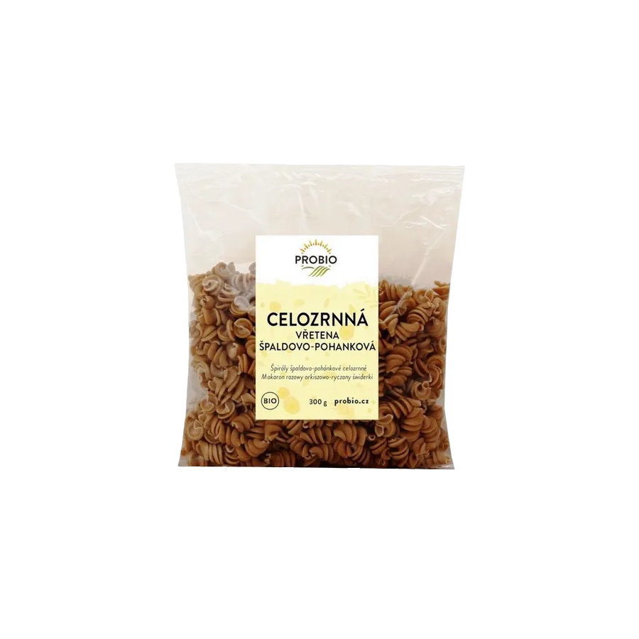 Bezvaječná vřetena špaldovo-pohanková poskytují plnohodnotnou a nutričně vyváženou kombinaci celozrnných plodin. PROBIO Vřetena špaldovo-pohanková celozrnná jsou bohatá na vlákninu a zasytí na dlouhou dobu. Ideální jako příloha, do salátů, rychlých pánví a podobně.