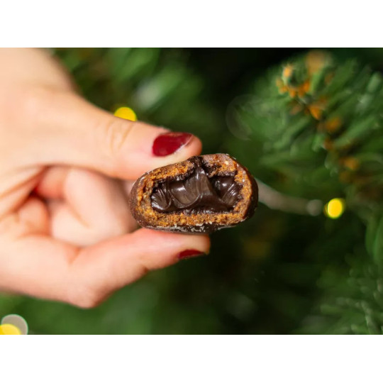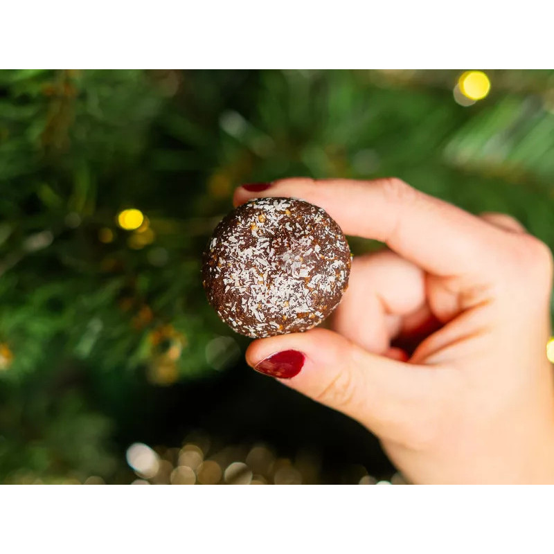 sušené datle 56,1 %, lískooříškový krém 33,3 % (pražená jádra lískových oříšků z Piemontu IGP 20 %, hnědý cukr, kakaový prášek se sníženým obsahem tuku, slunečnicový olej, plnotučné sušené mléko , jedlá sůl, emulgátor: přírodní sójový lecitin; vanilkový extrakt), mletá jádra kešu ořechů 7,9 %, strouhaný kokos 2,1 %, směs koření 0,6 % (skořice, hřebíček, badyán) Může obsahovat stopy lepku, jiných skořápkových plodů, sezamu, arašídů a části pecek.