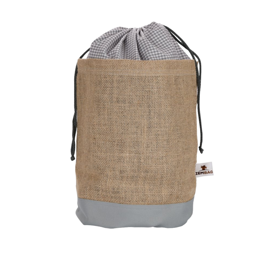 Unique three-layer design potato sack that can hold 2.5 kg of potatoes. The outer layer is made of a combination of cotton fabric and jute, the bottom is made of impermeable solid fabric. The middle layer is made of a dark non-woven fabric that is breathable, removable and does not transmit light. The inner layer contains aluminium foil, which maintains sufficient moisture and a protective atmosphere inside. The Zembag is closed by pulling the drawstring.