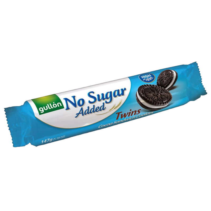Gullón No Sugar Added biscuits are without added sugar. They contain naturally occurring sugars. You can incorporate them into your balanced diet and treat yourself to something sweet. They have a great taste, similar to Oreo cookies, but with less sugar.