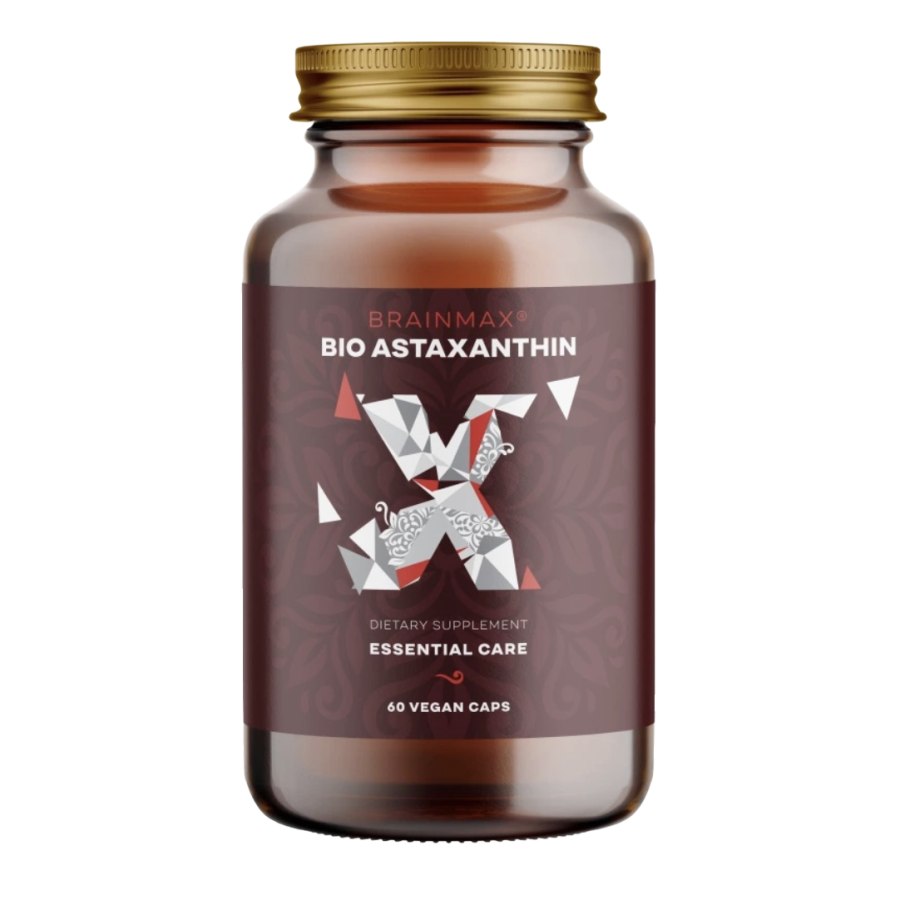 BrainMax Astaxanthin was extracted from the organically grown algae Haematococcus pluvialis and includes naturally occurring cartenoids such as lutein, canthaxanthin and beta-carotene. Maximum product purity is ensured by organic production technology and subsequent testing for heavy metals. The organic quality of astaxanthin guarantees up to 50 times higher bioavailability than its synthetic form.