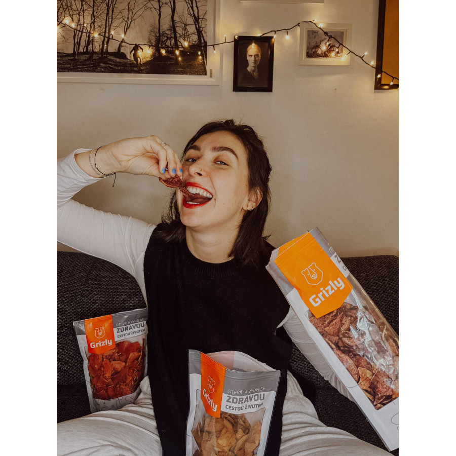 GRIZLY Sliced dried apples with blueberry powder 225 g