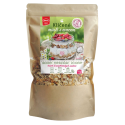 Ingredients: Dried sprouted flakes and flakes in varying proportions 59% (dried sprouted buckwheat flakes, dried sprouted gluten-free oat flakes*, dried sprouted red quinoa flakes, dried sprouted red lentil flakes), fruit in varying proportions 25 % (papaya (papaya 50 %, sugar, preservative(sulphur dioxide)), dried apples, curcuma), crushed corn flakes (corn 95 %, sugar, salt), pumpkin seeds, coconut flakes.