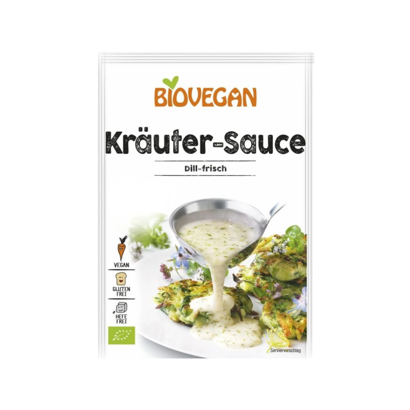 Herb sauce is a delicious blend of herbs, soy protein and spices, ideal for easy preparation of a tasty dish. Just whisk it in water, bring to the boil and add vegetable fat or cream for a perfect result.