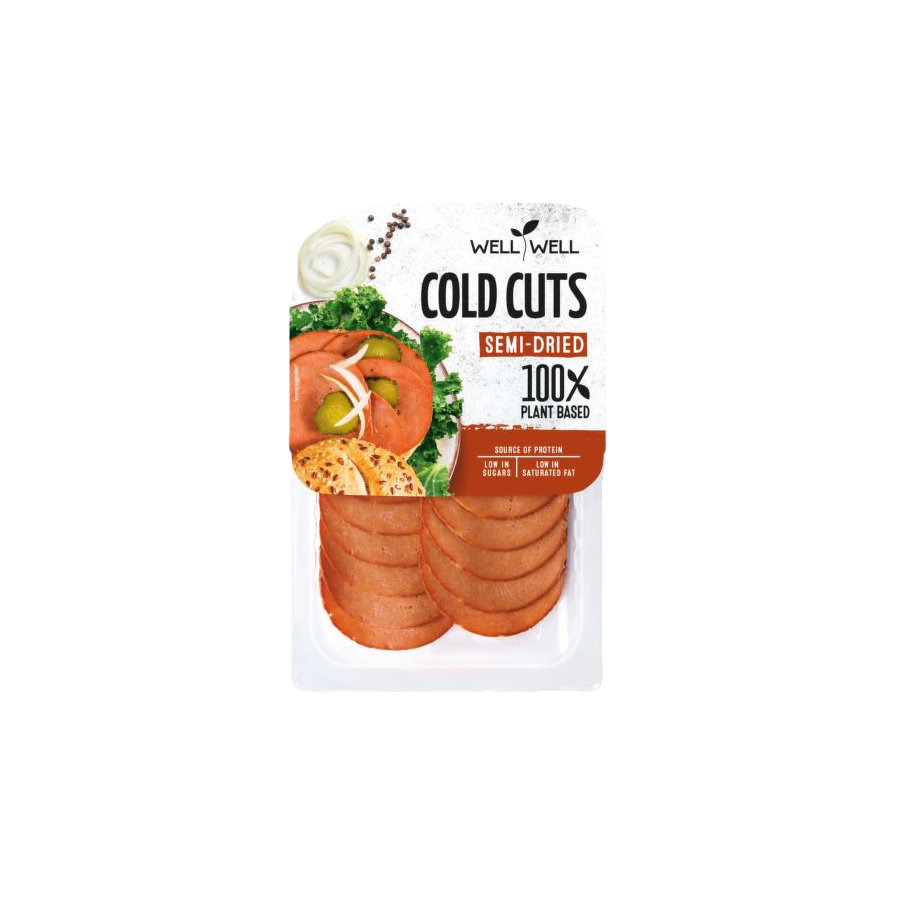 Sliced semi-dry vegan sausage made from vegetable protein. No preservatives. Perfectly seasoned, suitable for sandwiches, cold bowls and pizza.