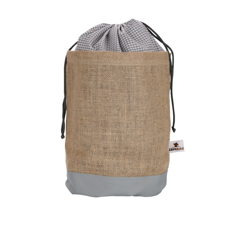 Saco de patatas de diseño exclusivo de tres capas con capacidad para 10 kg de patatas. La capa exterior está hecha de una combinación de tela de algodón y yute, y la inferior es de tela sólida impermeable. La capa intermedia está hecha de una tela no tejida oscura que es transpirable, extraíble y no transmite la luz.