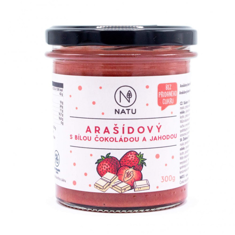 Natu Crema de cacahuete con chocolate blanco y fresa sin azúcar añadido 300g