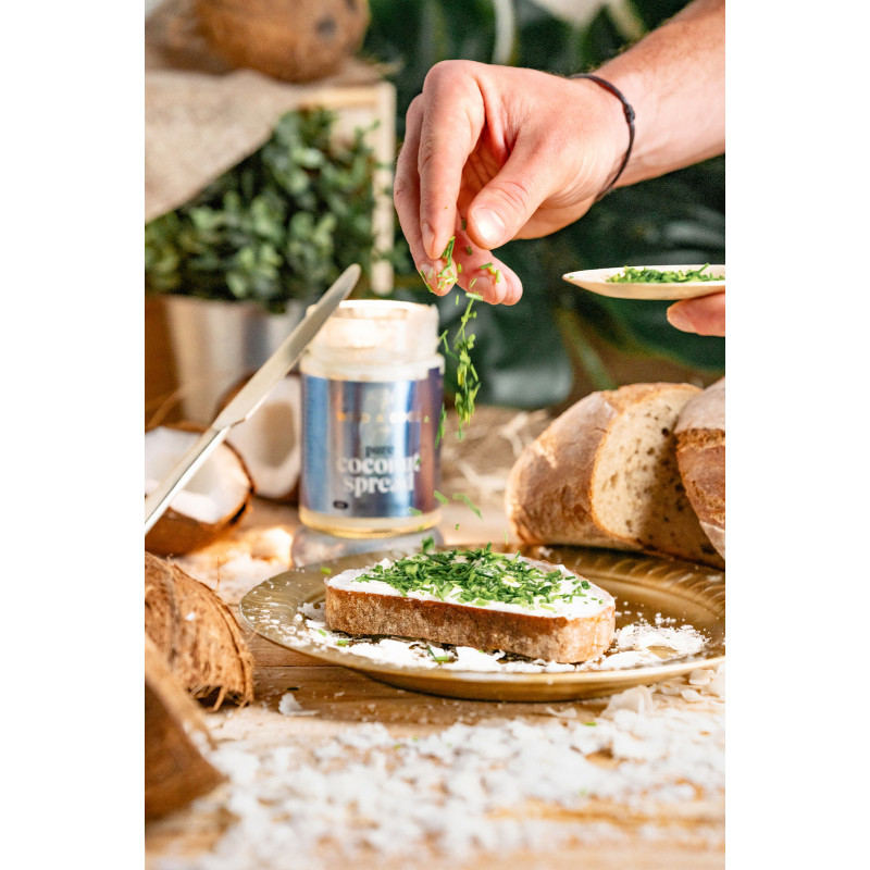 La pasta de coco para untar contiene una elevada proporción de grasas MCT, que se consideran una fuente de energía rápida y saludable y que, entre otras cosas, cuando se consumen durante un largo periodo de tiempo, favorecen la función cognitiva del cerebro, ayudan a mejorar la concentración y pueden tener un efecto positivo en el funcionamiento saludable del páncreas y el hígado. Debido a su fácil digestibilidad, también son adecuadas para quienes tienen dificultades para digerir grasas más complejas. La pasta para untar se elabora sin utilizar tratamiento a presión.