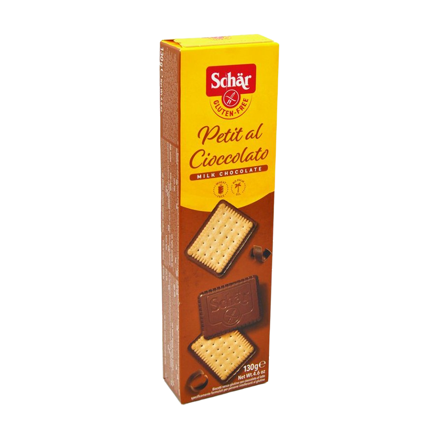 Pruebe las suaves galletas de mantequilla sin gluten Petit al cioccolato (Choco Buttekeks) bañadas en chocolate con leche. Una delicia para meriendas y salidas que deleitará y saciará a la vez.
