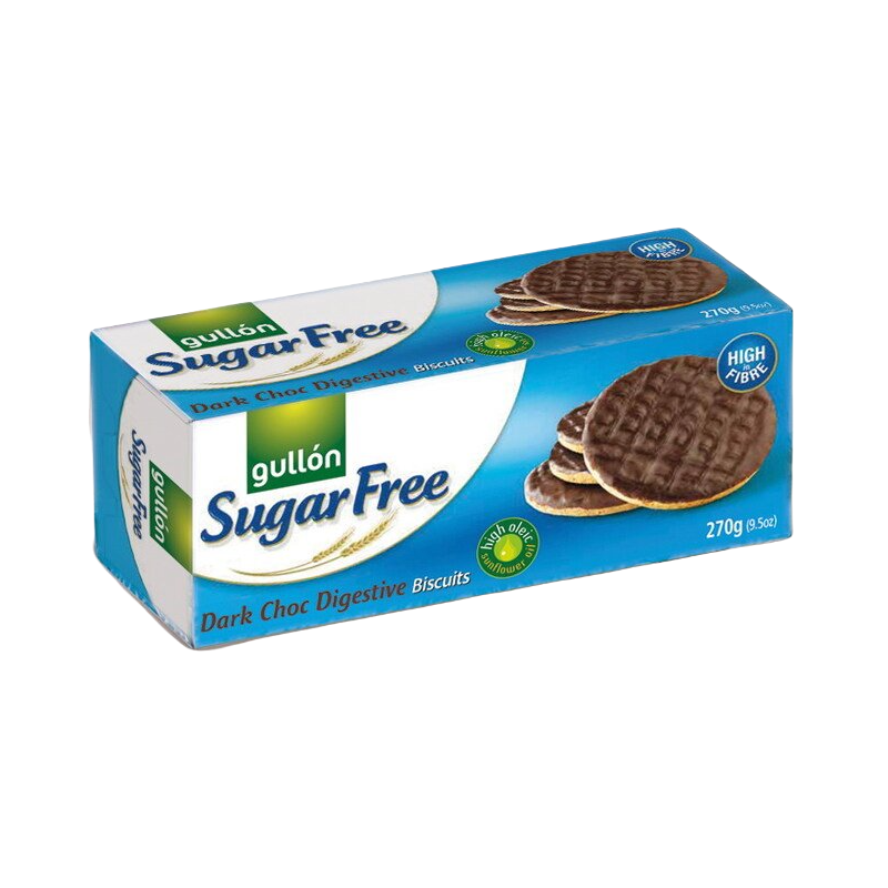 Las galletas integrales Gullón Digestive dark choc semi remojadas en chocolate negro, sin azúcar, con edulcorantes son una crujiente golosina recubierta de dulce chocolate negro endulzado únicamente con maltitol. Si busca una alternativa a las galletas habituales del supermercado que no contenga azúcar refinado añadido y que reduzca la cantidad total de calorías vacías que ingiere cada día, no busque más. Las galletas de Gullón le proporcionarán precisamente eso.