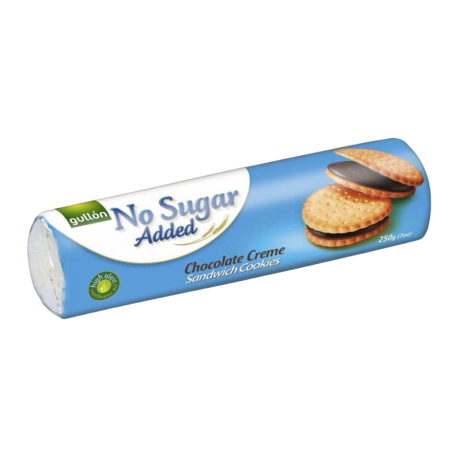 Galletas rellenas de crema de chocolate. Sin azúcar añadido. Con edulcorantes. Todas las galletas Gullón sin azúcar ni azúcares añadidos tienen un sabor delicioso y son una opción realmente estupenda. Puedes incluirlas en tu dieta equilibrada. Son aptas para diabéticos e ideales para aquellos que simplemente quieren reducir su consumo de azúcar y darse un capricho dulce.