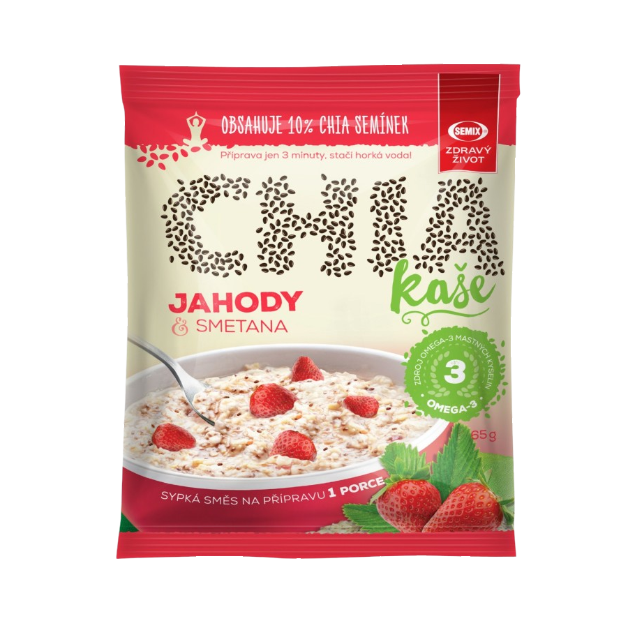 Gachas de avena y chía Fresas y nata Estas gachas contienen 1,5 g de ácido alfa-linolénico (de la familia de los ácidos grasos omega-3) en 100 g, que contribuye al mantenimiento de niveles normales de colesterol en sangre. El efecto beneficioso se consigue con una ingesta de 2 g de este ácido al día. Para mantener la salud, sigue los principios de un estilo de vida saludable.