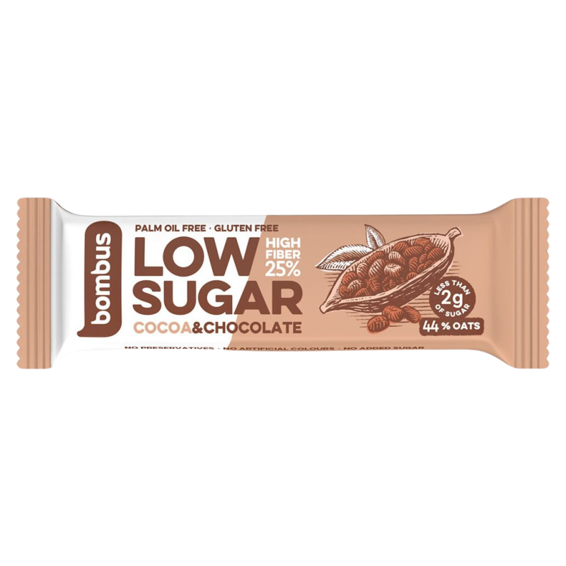 No es una barrita de fruta ni a base de dátiles, no es una barrita de proteínas, no es de frutos secos ni muesli, no está cubierta de chocolate y, sin embargo, está llena de él. Low Sugar es simplemente una mezcla sana y sabrosa de todo. Low Sugar es una gama de barritas de avena sanas, sin gluten y muy bajas en azúcar, a base no sólo de copos de avena, sino también de chocolate con leche y maltitol, que confiere a las barritas un intenso sabor a chocolate sin dulzor innecesario, conservando al mismo tiempo el carácter de producto sano y un excelente sabor. Las barritas tienen una composición equilibrada y, además de una importante proporción de avena sin gluten, también contienen una elevada cantidad de fibra, que sacia rápidamente.