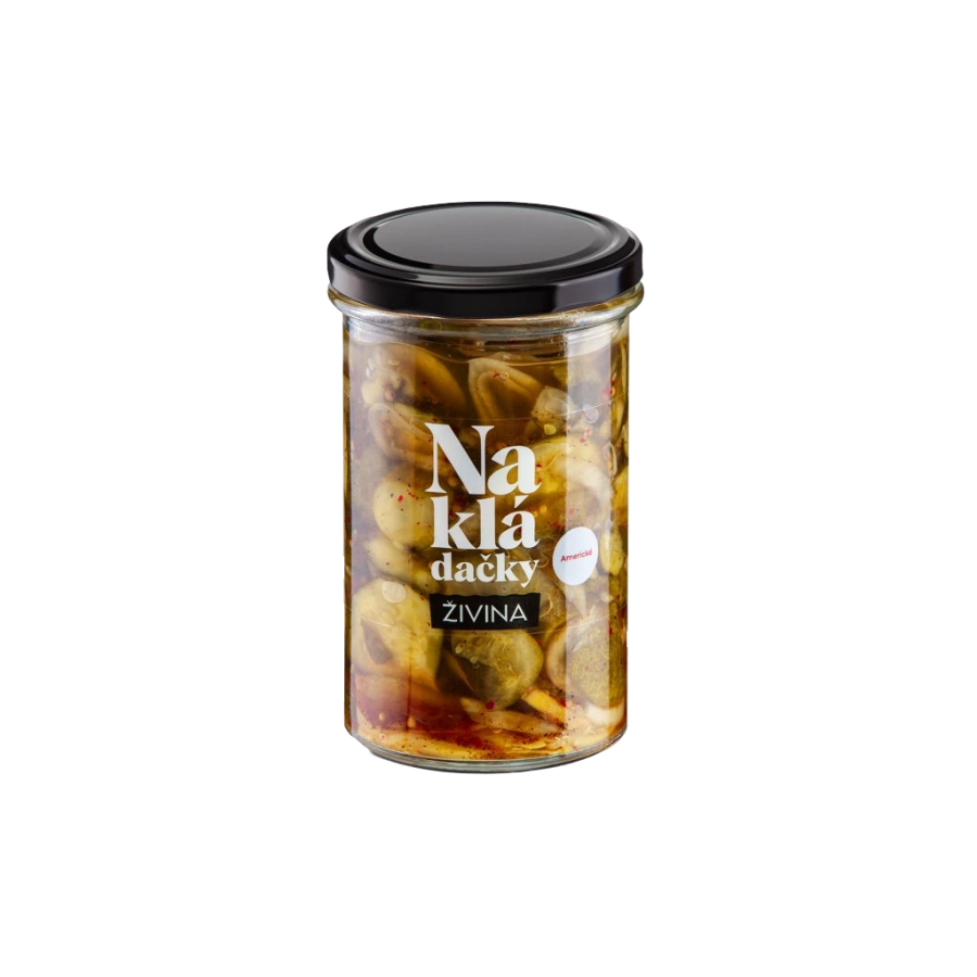 Los pepinillos americanos se marinan en una salmuera agridulce ligeramente picante con copos de Gochugaru coreano. Se trata de pepinos checos encurtidos a mano en los 2 días siguientes a su recolección para conservar al máximo los nutrientes y su sabor inconfundible. A los pepinos checos les añadimos cebollas, copos de Gochugaru coreano, espolvoreados con granos de mostaza y cubiertos con nuestro licor de vinagre. Sin sustancias añadidas ni edulcorantes artificiales, pero perfectamente crujientes.