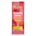 Sin embargo, también es adecuado para su consumo fuera del deporte, como suplemento proteico. La bolsa contiene 17 g de proteínas = concentrado de proteína de suero de alta calidad. Es bajo en ácidos grasos saturados. El batido contiene un 5% de fresas deshidratadas. Mezcla seca para la preparación de Batido proteico de fresa