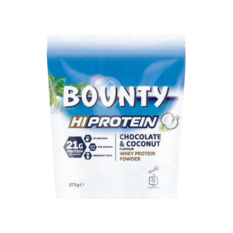 Bounty Protein Powder es proteína de suero de leche con el sabor perfecto de la barrita Bounty favorita en todo el mundo. Gracias a su composición, tiene una consistencia cremosa perfecta. Después de probarla por primera vez, las inconfundibles notas de coco y chocolate vienen inmediatamente a la mente. Sabe muy bien como bebida para después del entrenamiento. Pero también puedes añadirlo a las gachas de avena o a los postres para añadir proteínas y llevarlos al siguiente nivel.