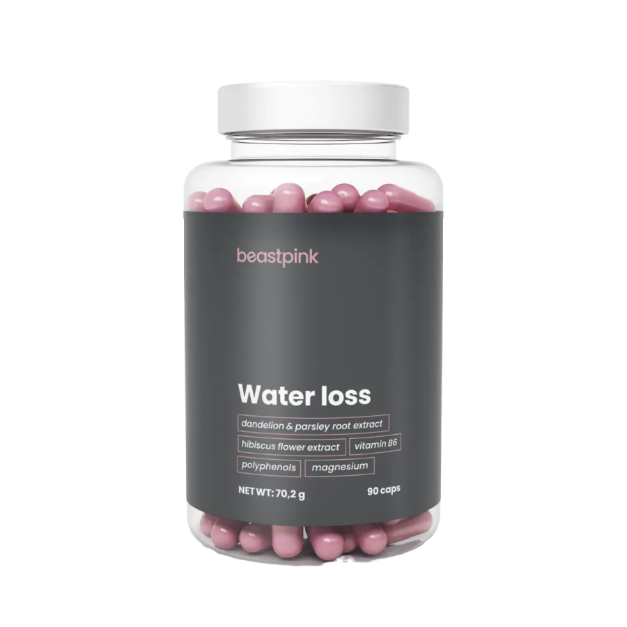 Además de extractos naturales, Water Loss también contiene vitamina B6, que contribuye a la regulación de la actividad hormonal. De hecho, son las hormonas las que pueden estar relacionadas hasta cierto punto con la cantidad de agua en el cuerpo. Además, esta vitamina también tiene un efecto sobre el metabolismo energético, y también contribuye a la reducción de la fatiga y el agotamiento. El último componente de este eficaz complejo es el magnesio. Favorece el buen funcionamiento de la psique, el sistema nervioso, los músculos, reduciendo la fatiga y el agotamiento, y también ayuda a mantener el equilibrio de electrolitos. Esto se asocia, por ejemplo, a una hidratación óptima del organismo.