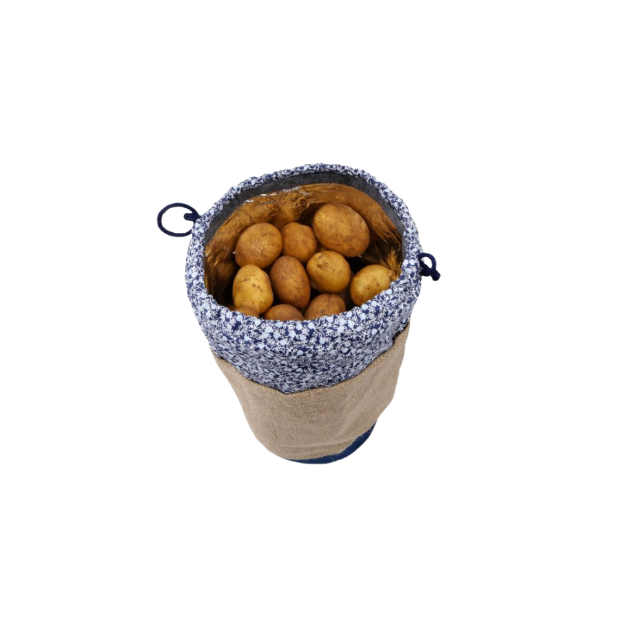 Saco de batata com um design único de três camadas, com capacidade para 2,5 kg de batatas. A camada exterior é feita de uma combinação de tecido de algodão e juta, o fundo é feito de tecido sólido impermeável. A camada intermédia é feita de um tecido não tecido escuro que é respirável, amovível e não transmite luz. A camada interior contém uma folha de alumínio, que mantém uma humidade suficiente e uma atmosfera protetora no interior. O Zembag fecha-se puxando o cordão.