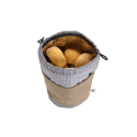 Saco de batata com um design único de três camadas, com capacidade para 2,5 kg de batatas. A camada exterior é feita de uma combinação de tecido de algodão e juta, o fundo é feito de tecido sólido impermeável. A camada intermédia é feita de um tecido não tecido escuro que é respirável, amovível e não transmite luz. A camada interior contém uma folha de alumínio, que mantém uma humidade suficiente e uma atmosfera protetora no interior. O Zembag fecha-se puxando o cordão.