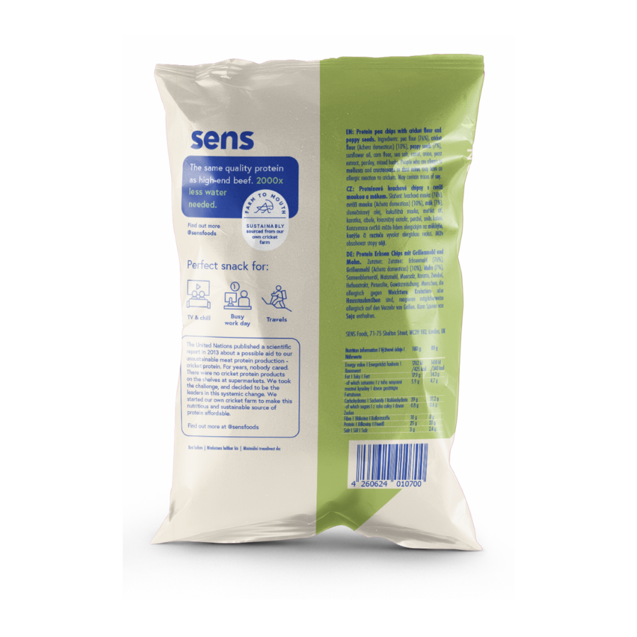 Sens Protein chips de ervilha com farinha de grilo e sementes de papoila 80 g