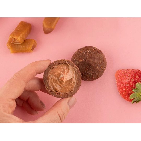 Přivítejte Crème boule, ve francouzském překladu je to doslova krémová koule, která pod lahodnou vrstvou výběrových datlí a prachu z mrazu sušených skrývá sametový karamelový krém z piemontských lískových oříšků. Tahle koule vám při mlsání udělá jednoduše boule až za ušima, o to se postará chuťová harmonie datlí, karamelu, jahod a jemně nasekaných pistácií bez palmového oleje a bez zbytečných umělých přísad a chemie. Crème boule jsou dokonalým zdrojem rychlého a nebesky dobré energie, kterou můžete mít vždy po ruce.Bez palmového oleje Skvěle chutnajíSe sametovým krémem z piemontských lískáčůKaždá boule obsahuje 33 % lahodného krému