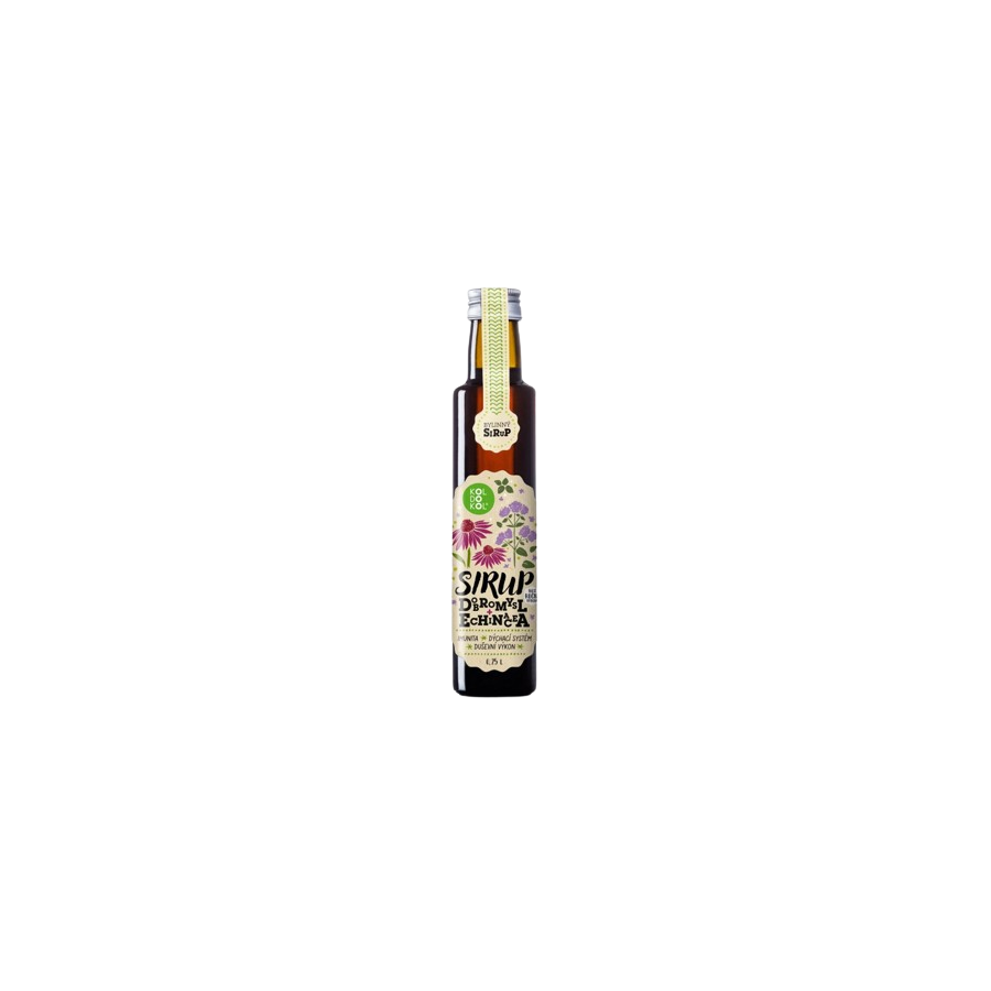 O extrato de flor de equinácea, o açúcar de cana de boa qualidade e o sumo de limão biológico garantem não só um excelente sabor do xarope de ervas, mas também um forte efeito antioxidante. A combinação única de ervas também afecta positivamente o sistema respiratório e o desempenho mental.