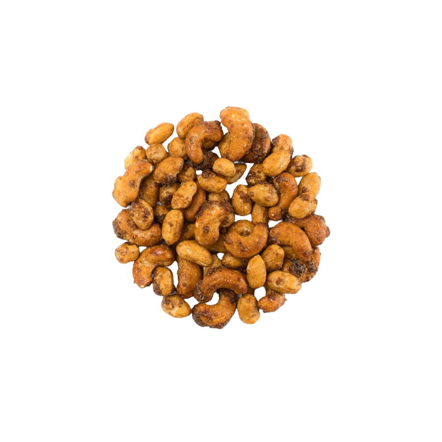 Uma deliciosa combinação de cajus com amendoins em mel e sal, adequada para cerveja, vinho ou simplesmente para comer.