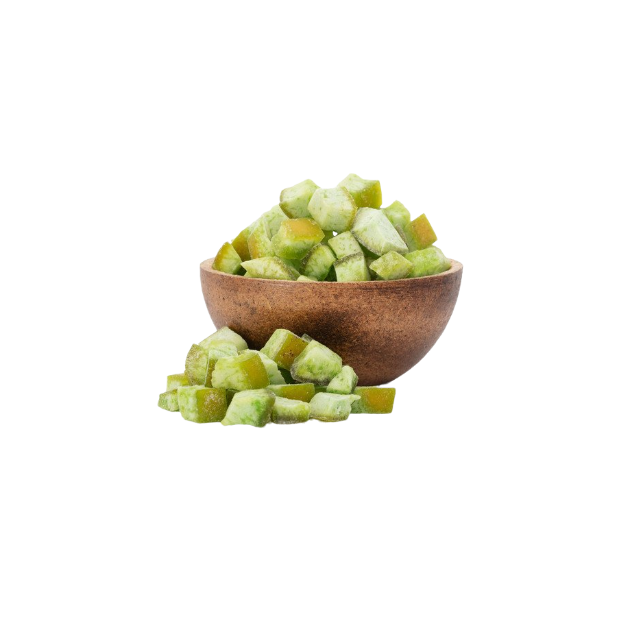 A forma atual do nosso produto: é em grande parte a casca do pomelo e o sabor é, por isso, ligeiramente ácido, pelo que recomendamos que o coma em pequenas porções ou que refresque com ele as suas papas matinais.