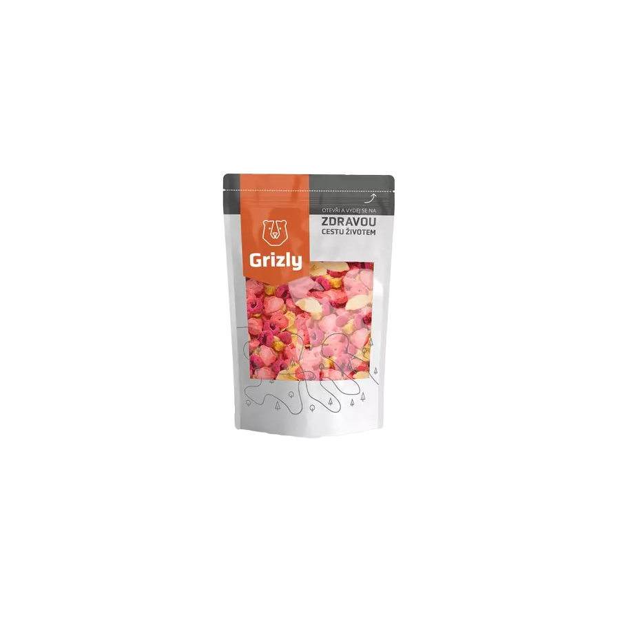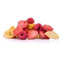 Uma mistura colorida de frutos liofilizados crocantes composta por morangos, framboesas, pedaços de ananás lyo, pêssegos, mangas e fatias de banana lyo. Uma delícia para o seu paladar numa embalagem maior que pode ser fechada novamente.