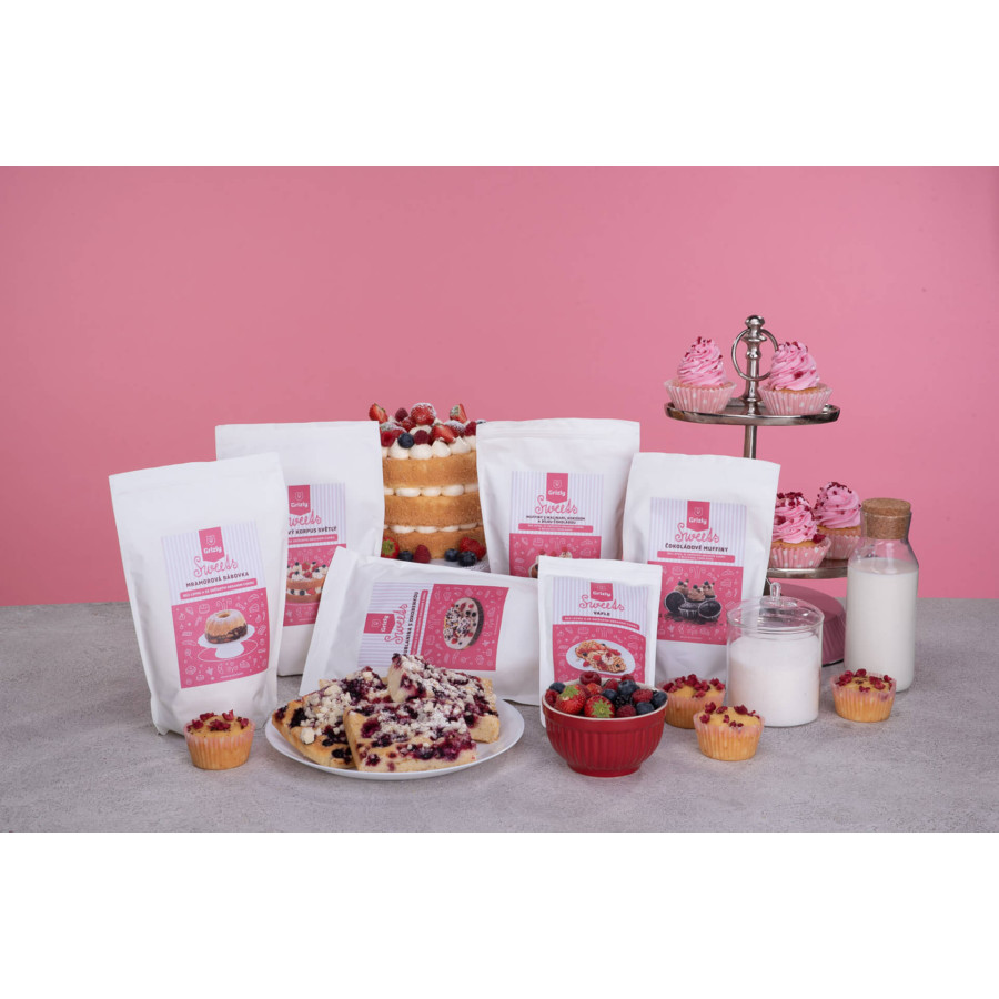 A base da mistura de pão de nozes sem glúten são nozes moídas e uma mistura sem glúten de alta qualidade feita de ingredientes naturalmente sem glúten, como arroz, batata, milho e farinha de trigo sarraceno, tapioca e bicarbonato de sódio. Para além de não conter glúten, a mistura para pão também contém eritritol, que reduz a proporção de açúcar no pão de nozes. A mistura está pronta para ser misturada com os ingredientes líquidos (ovos, leite e óleo) e depois cozida. A sobremesa acabada sabe a caseiro.