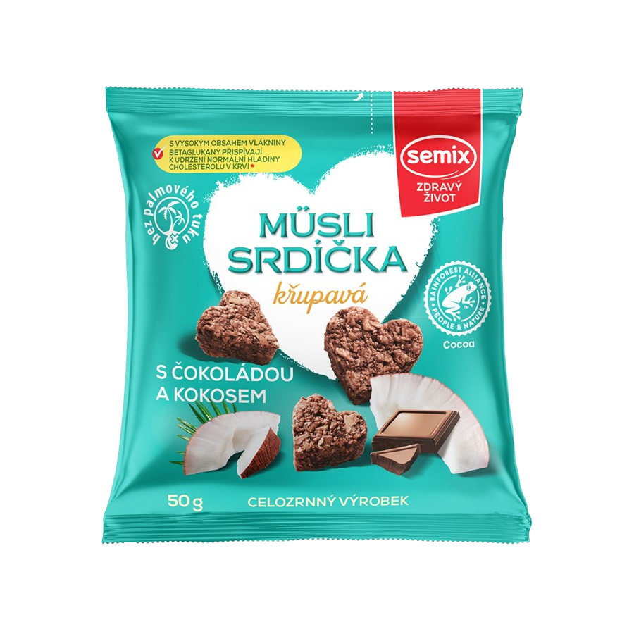 Semix Muesli corações com chocolate e côco 50 g