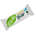 A Barra de Proteína Vegana é uma barra de proteína vegana com baixo teor de açúcar e alto teor de fibras, coberta com chocolate preto verdadeiro.